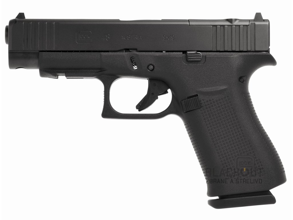 Glock 48 je nejnovější pistole GLOCK s jednořadým zásobníkem v ráži 9x19 řady slimline vhodná pro skryté nošení. Pistole je vybavena railem na taktické svítilny. Sdandardně dodávána v sadě se dvěma zásobníky na 10 nábojů.