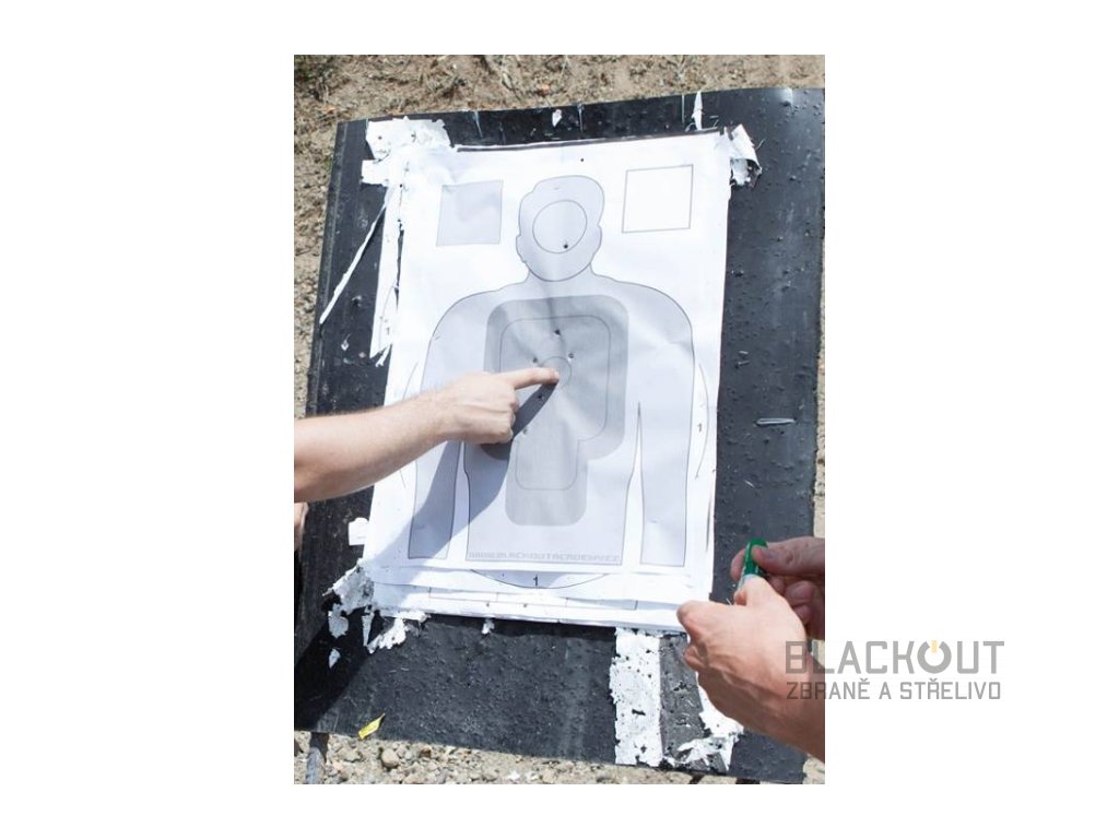 Terč POSTAVA má standardní siluetu s několika vitálními zónami a je určen pro standardní střelecké tréninky a drilly. Terč je natištěn na kvalitním papíru a odolává nejrůznejším pověternostním podmínkam - od slunečných letních dní až po mrznoucí mlhu při -10°C nebo déšť.